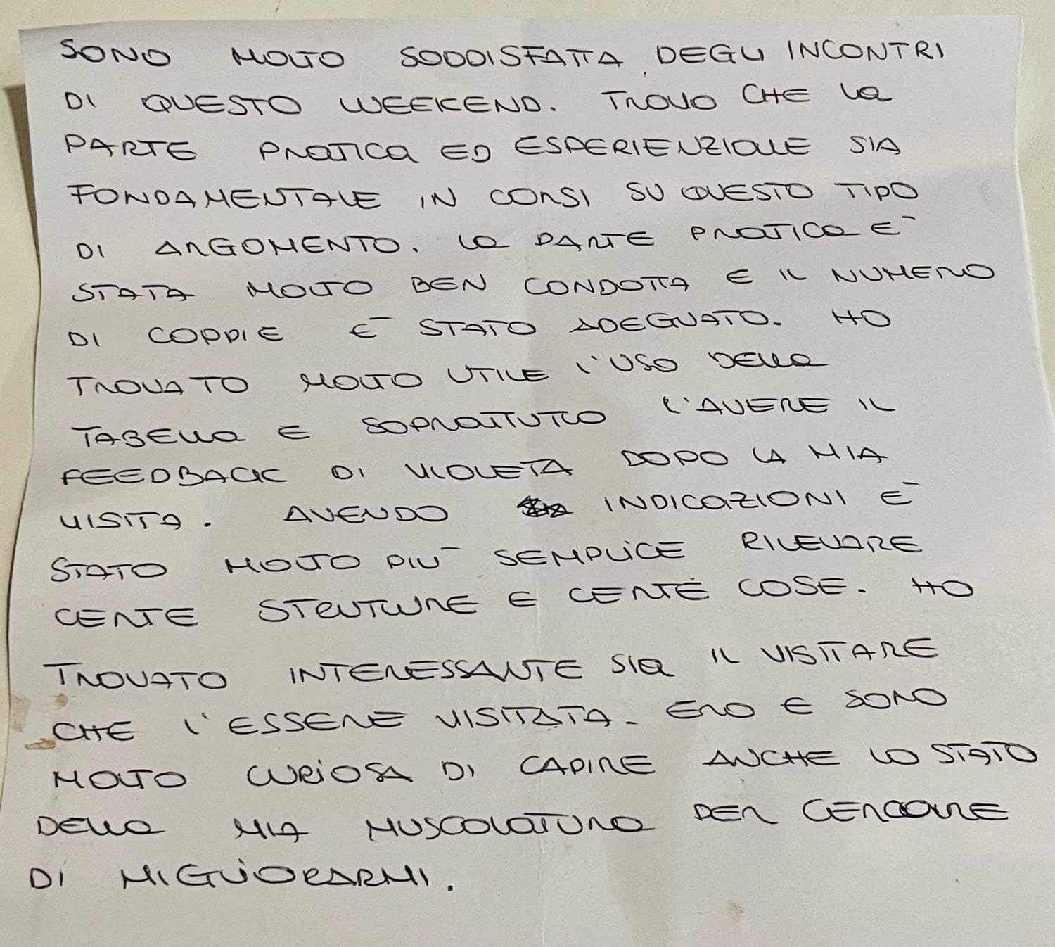 L'11 e il 12 aprile c'è stato il corso pratico di valutazione pelvica. Due giorni dedicati esclusivamente alla visita vaginale guidata passo passo da me, Violeta Benini.